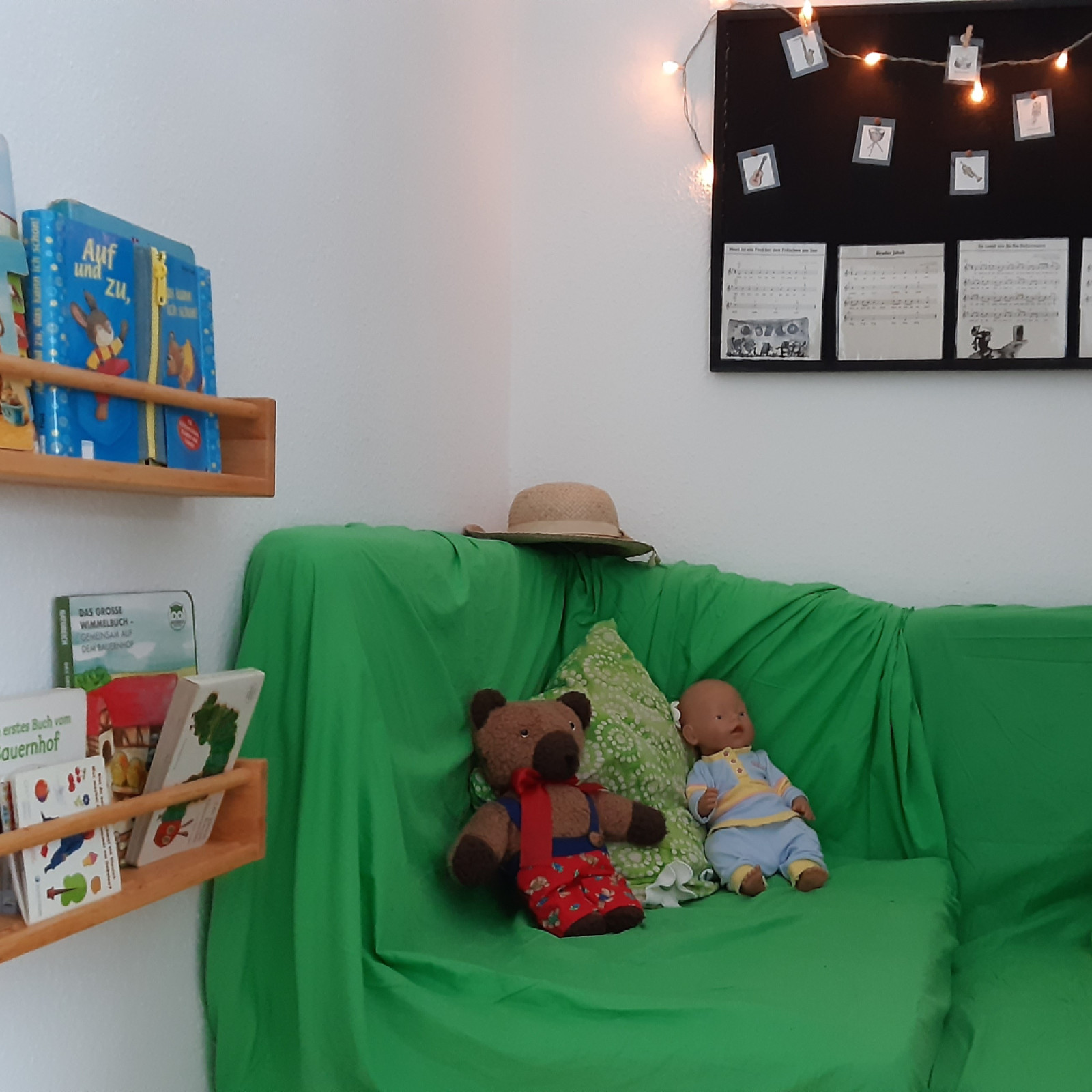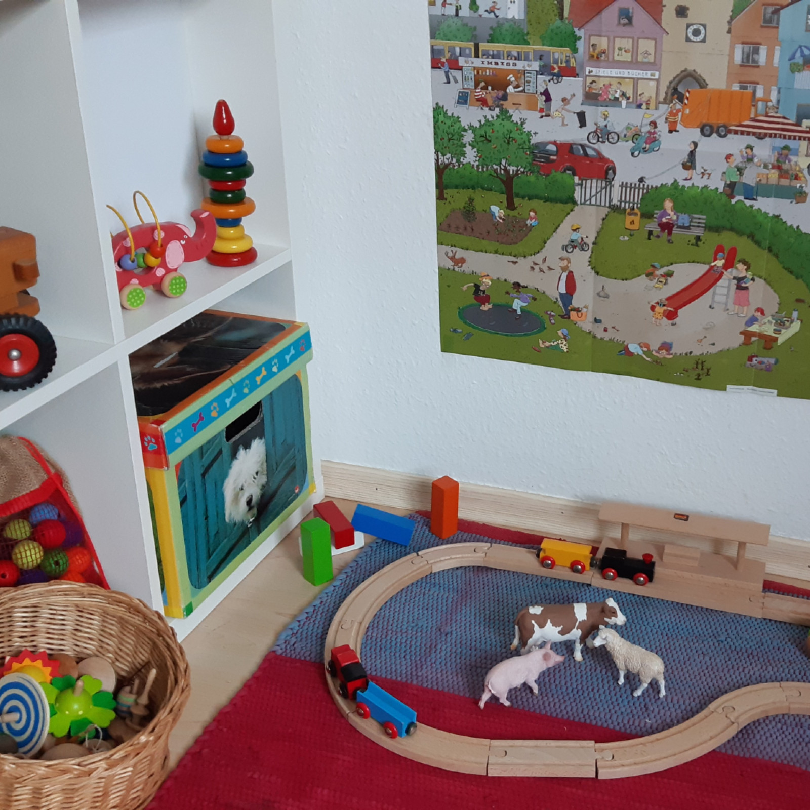 In der ca. 80m² großen Wohnung steht den Kindern ein eigenes Spielzimmer zur Verfügung mit Möglichkeiten zum Bauen, Malen & Basteln, Ausruhen & Schlafen, Lesen, Essen und für Rollenspiele. Der kleine Garten bietet Platz zum Toben, Buddeln im Sandkasten und Anbauen von eigenem Obst & Gemüse.